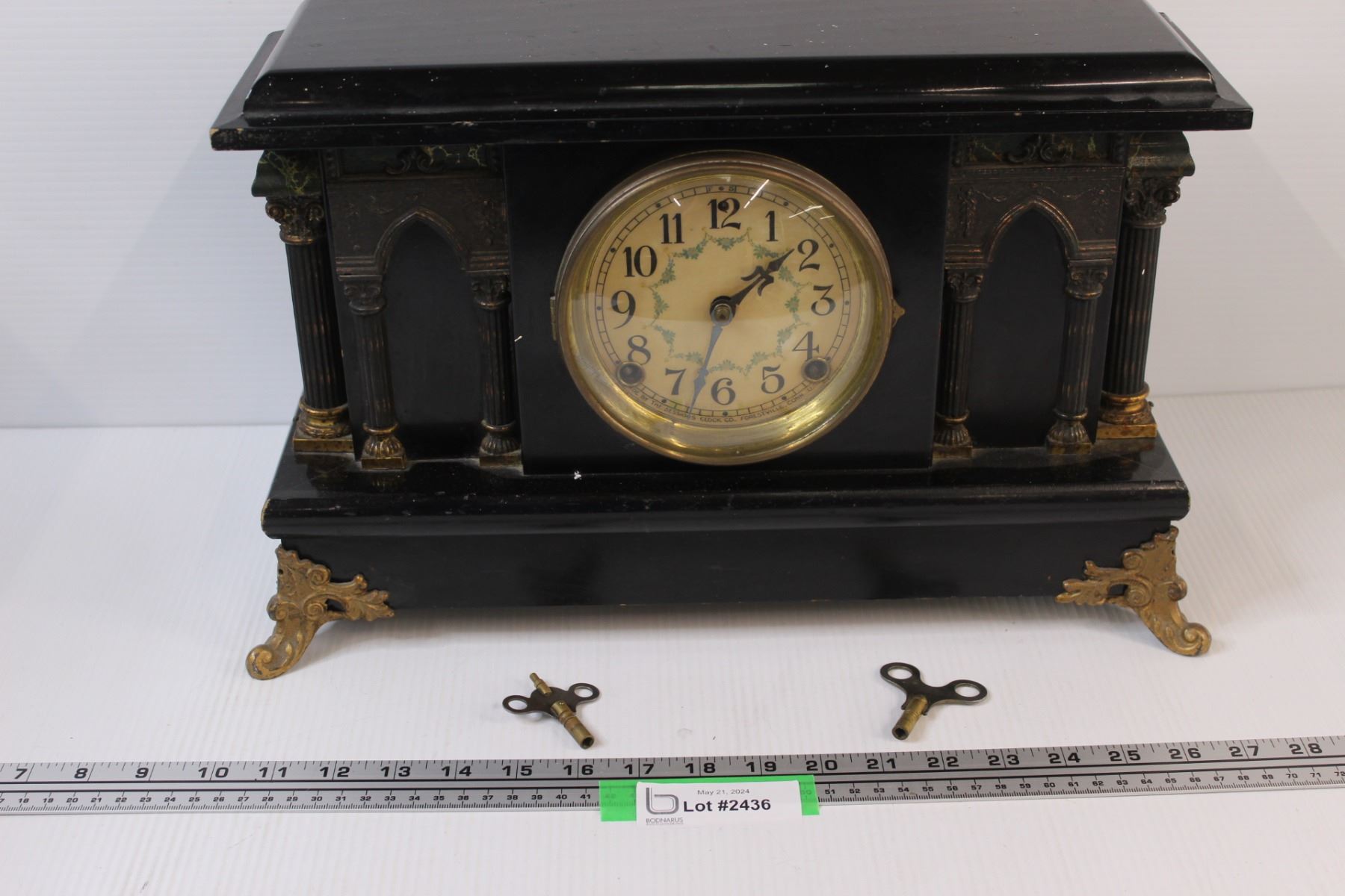 Sessions Clock Co. Mantle Clock w/Keys - (One Pillar Loose on Right hand Side) 16"x5"x10", Untested