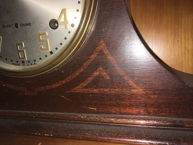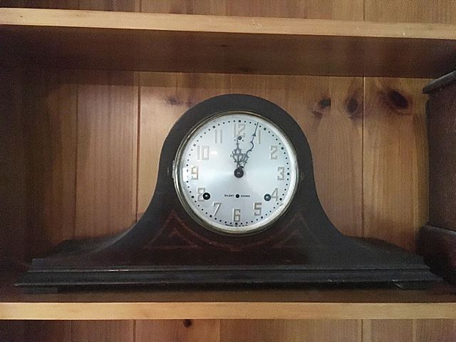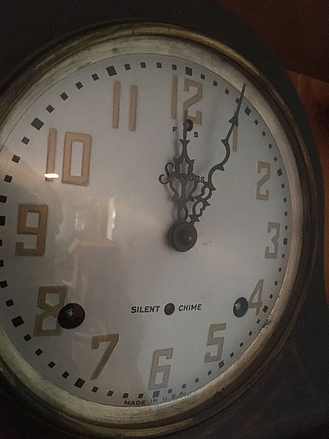 Sessions Mantel Clock, silent chime, measures approx. 21 1/2" wide x 10" tall. The Sessions Clock Co., Forestville, CT.