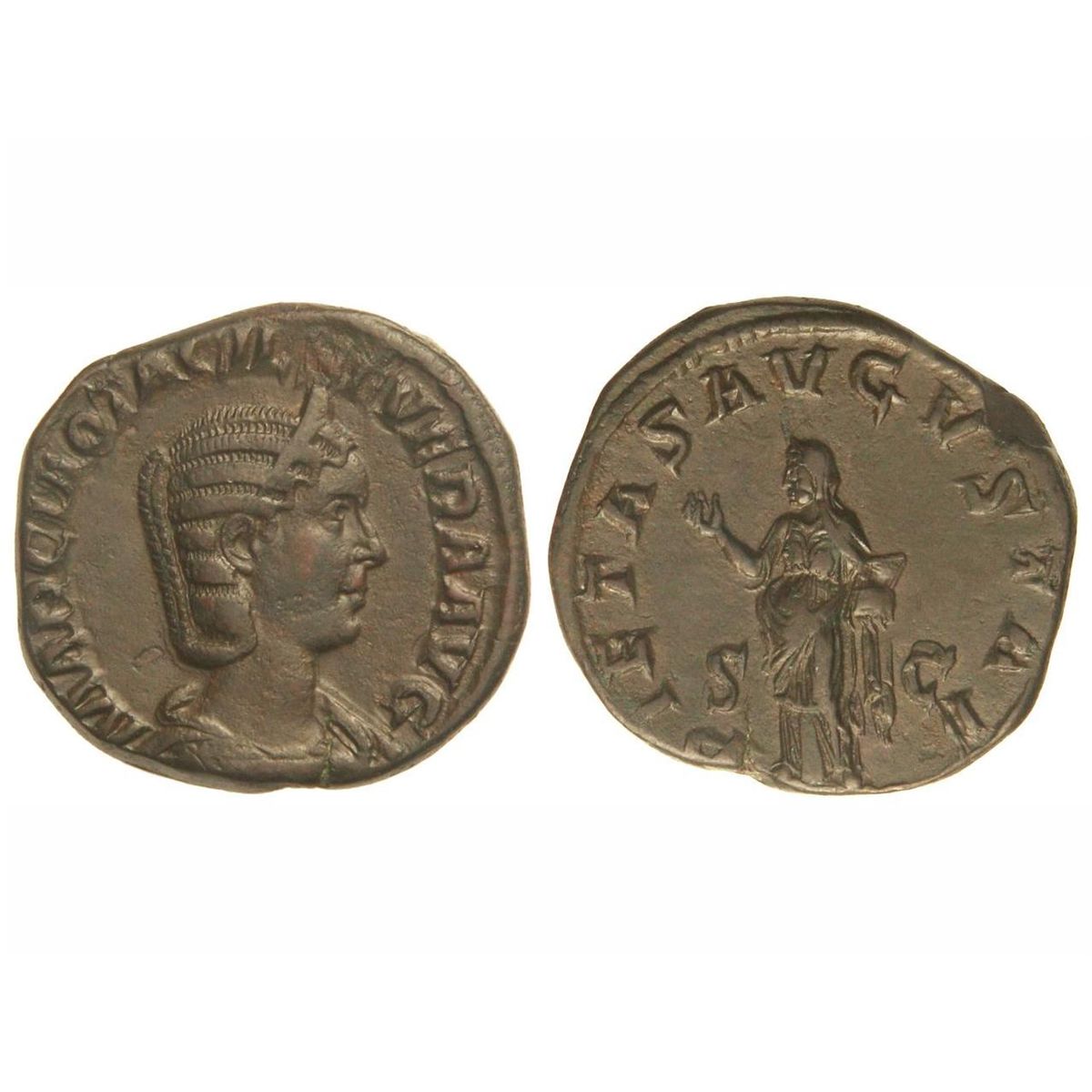 Sestercio. - Acuñada el 244-249 d.C. - OTACILIA SEVERA. - Anv.: MARCIA OTACIL. SEVERA. AVG. Busto diademado a derecha. Rev.: PIETAS AVGVSTAE S. C. Piedad en pie a izquierda con estuche de perfumes. 18,2 grs. Pátina marrón. C-46. EBC-. - -