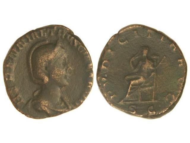 Sestercio. - HERENNIA ETRUSCILLA. - Anv.: HERENNIA ETRVSCILLA AVG. Busto diademado. Rev.: PVDICITIA AVG. S. C. Pudibundez sedente a izquierda, portando cetro y tapándose con el velo. 19,10 grs. (Rayas). C-22. MBC-. - -