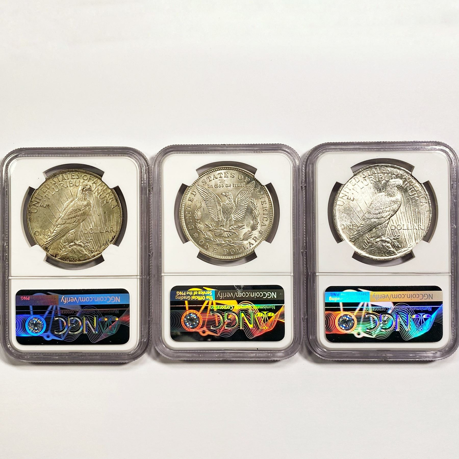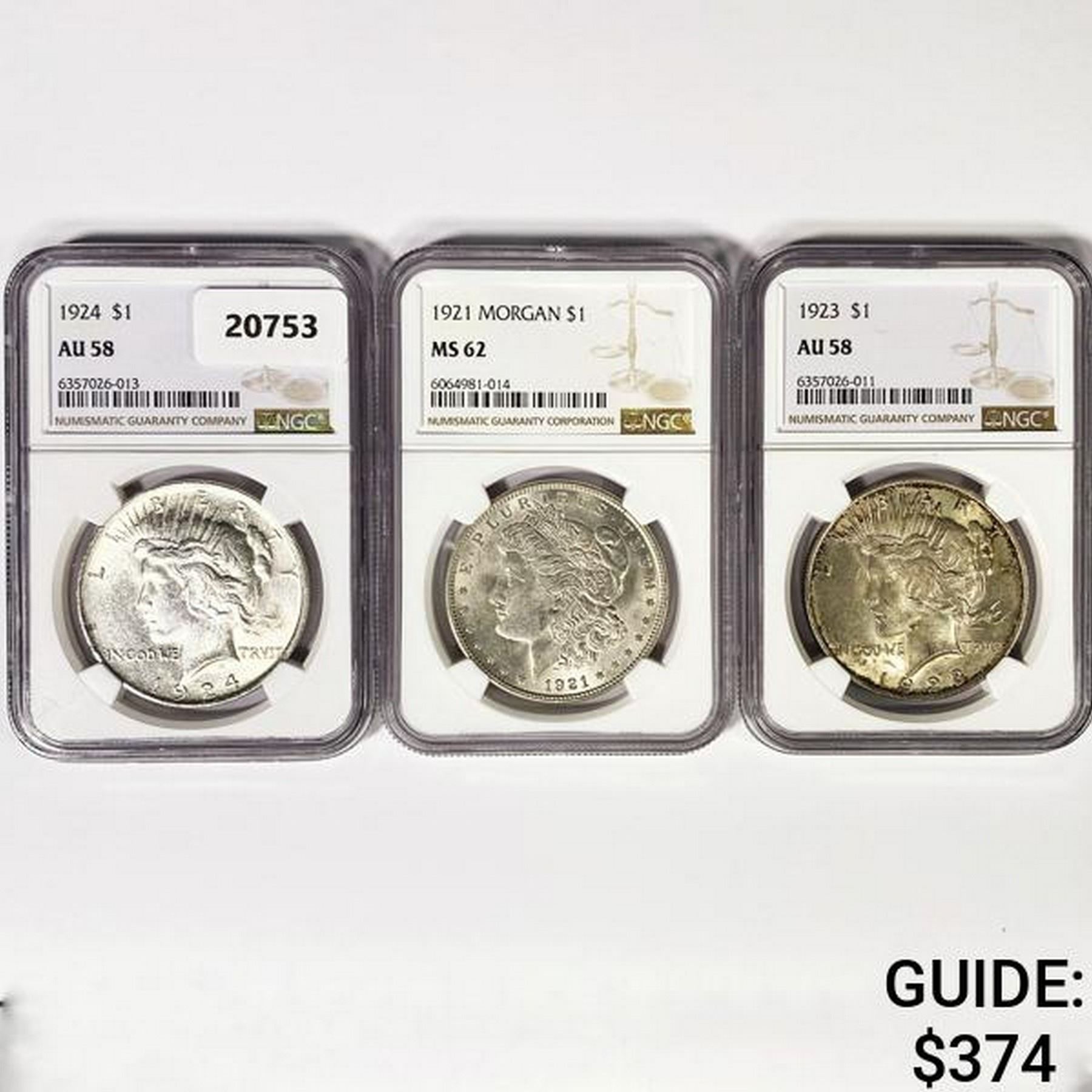 Set 1921 Morgan, 1923 & 1924 Peace Dollars NGC