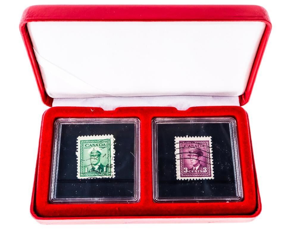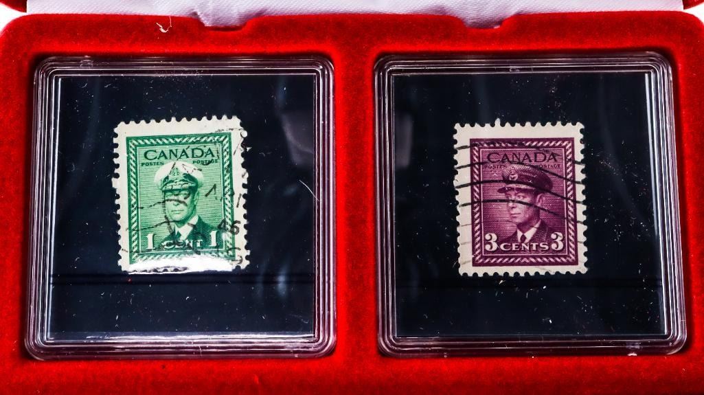 Set 2 Canada 1 Cent & Three Cents Stamps Quads - Case