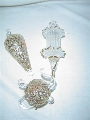 This set includes 3 clear Egyptian Glass Ornaments from 3" to 5". These Christmas ornaments were individually crafted of hand blown glass and hand-accented in 24k gold.  Each unique piece is truly an Egyptian treasure.