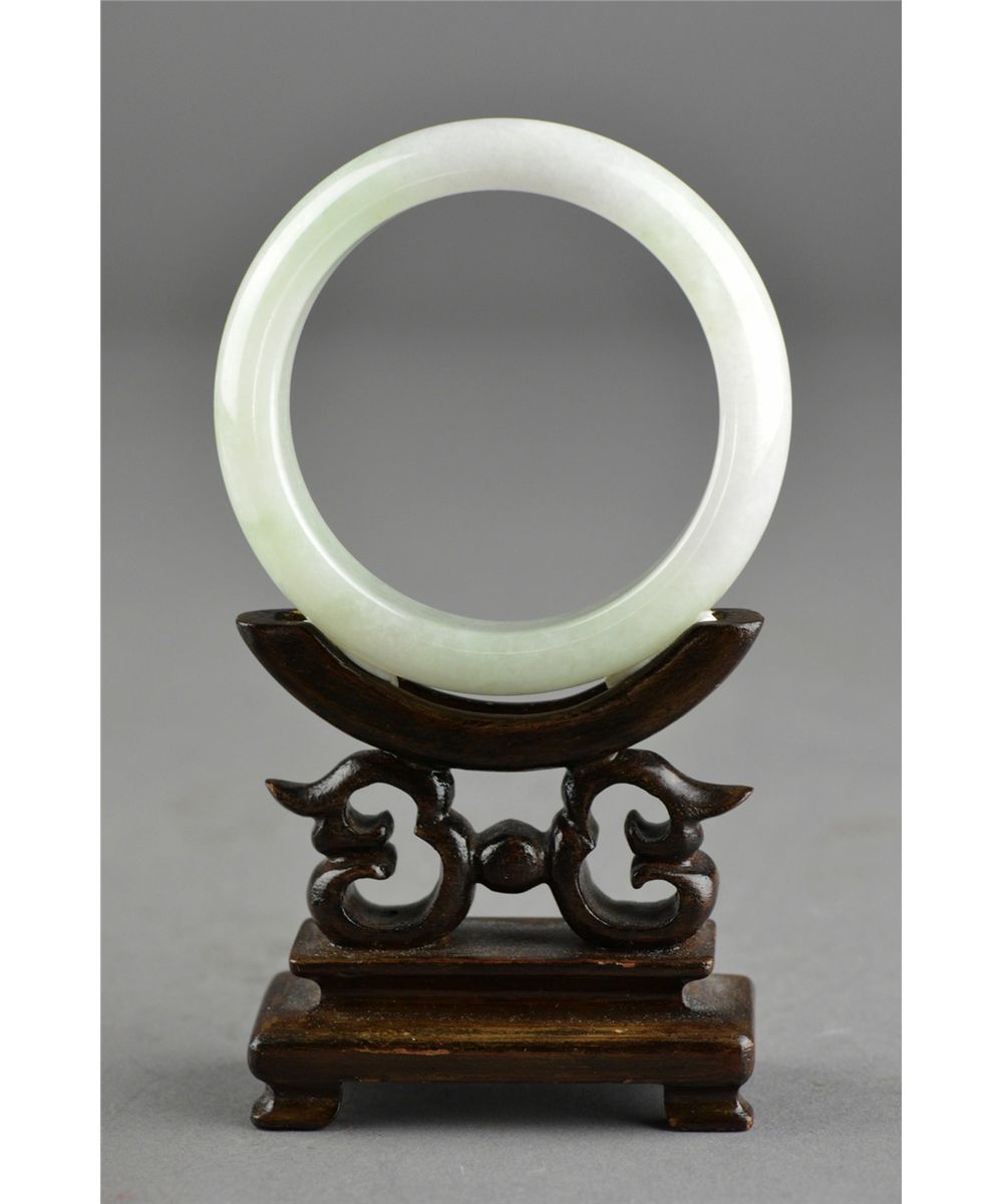 Set of three Chinese carved jade pieces; lavender jade Buddha pendant, pierced for suspension; celadon carved jade bangle; carved apple green jade necklace; L: 5 cm, 46 grams (pendant); D: 7.5 cm, 80 grams (bangle); L: 24 cm, 68 grams