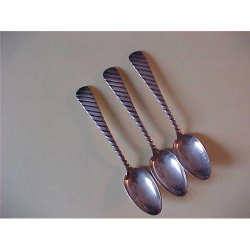 Set 3 Silver Wm Rogers Demitase Spoons! Nice pattern - I do not know the name but is "ridged" on a downward right slope all the way down the spoon with a plain back. Clearly signed and emblem and A1 on reverse.