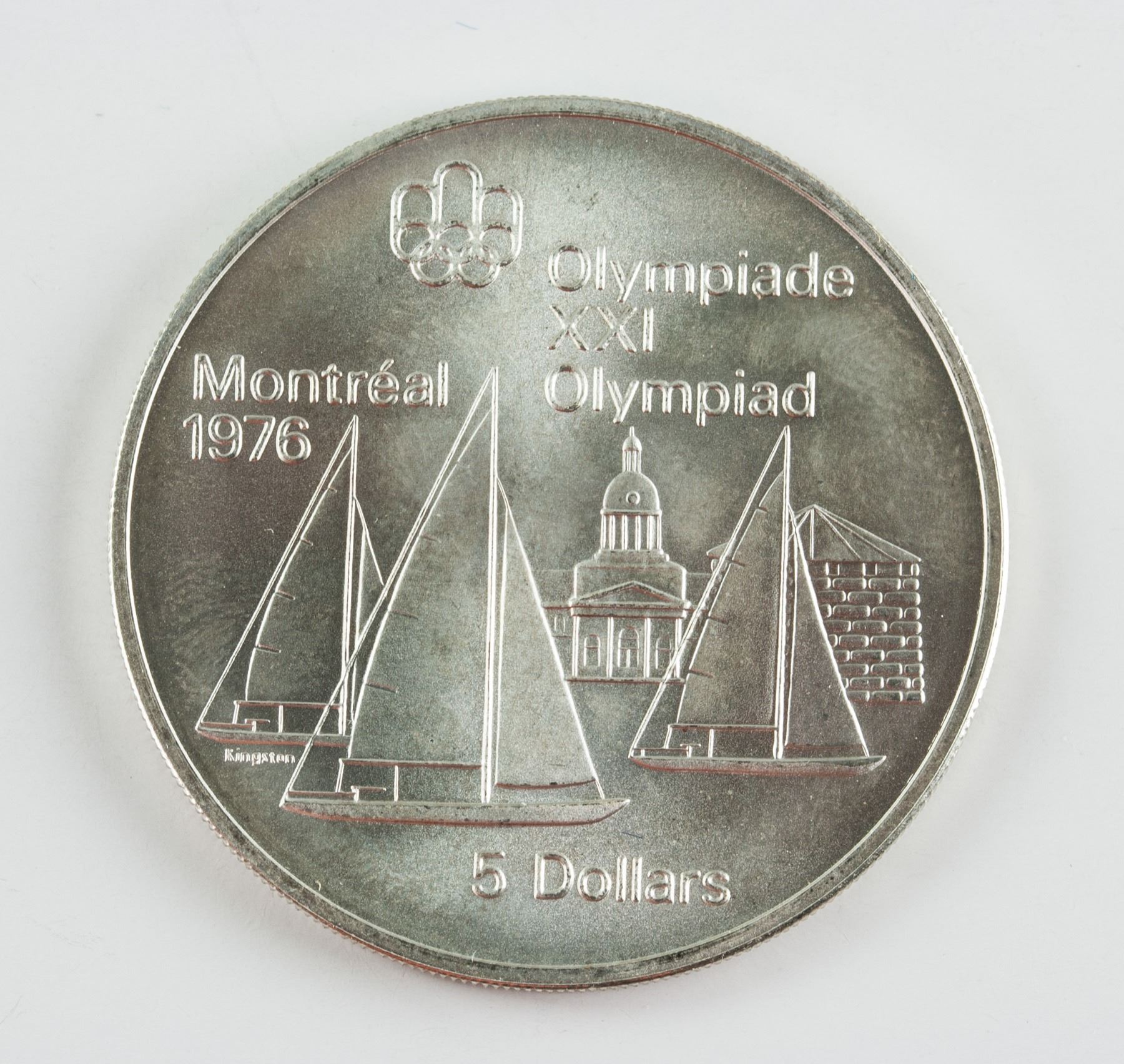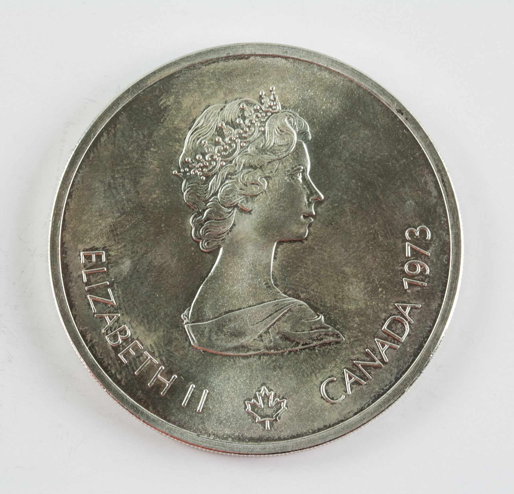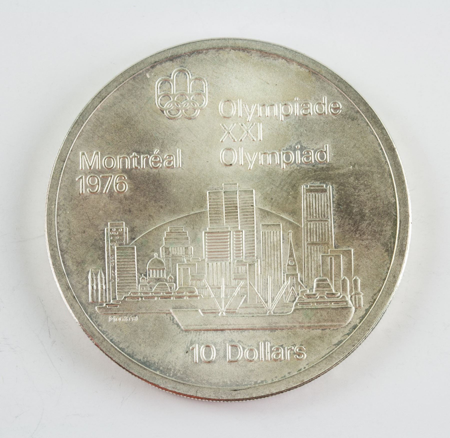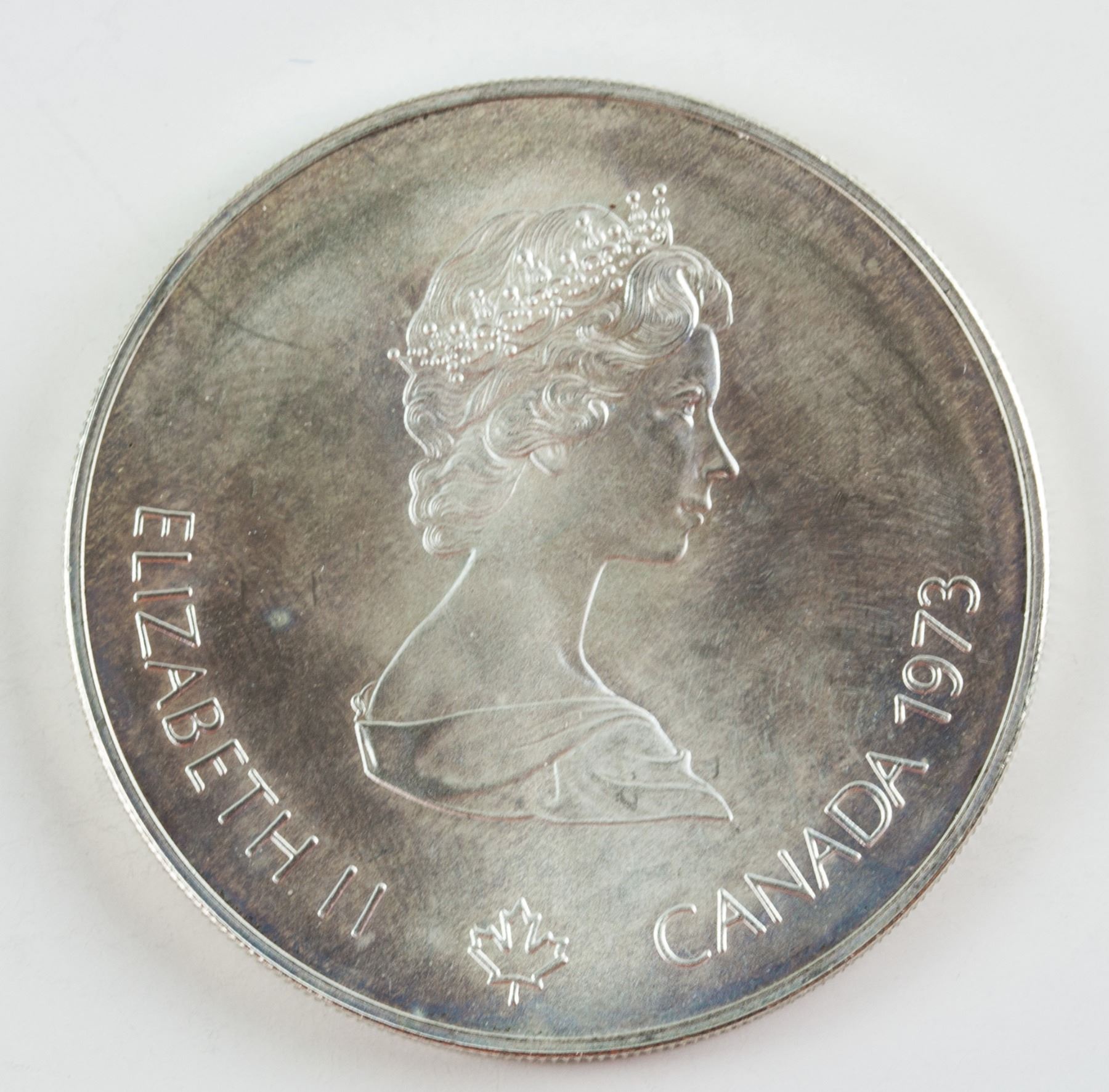 4 pieces of assorted 1973 Canada non circulating sterling silver (.925) coin; commemorative issue 1976 Montreal Olympics; of 2 pieces of 5 Dollar and 2 pieces of 10 Dollars; obverse all engraved effigy of Queen Elizabeth II facing right, lettering ELIZABETH II CANADA 1973; reverse engraved map of North America, sailing boats, map of world, Montreal skyline; lettering Olympiade XXI, Montreal Olympiad, 1976; reeded edge; 3.8 cm- 4.5 cm, Total: 147 grams