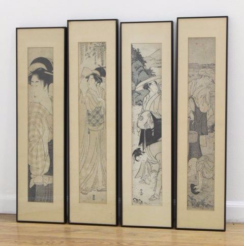 Approx. 24 1/2" H x 4 1/2" W sight, 31 1/2" H x 8" W framed. Wear and staining.