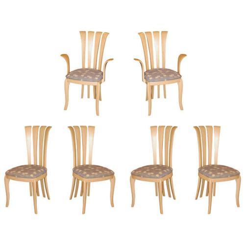 Set of six A. Sibau chairs. Two arms chairs and four side chairs. Please call for dimensions as the arm chairs and side chairs are different.