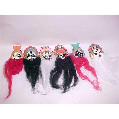Set 6 Chinese Finger Puppets. Red, Black and white beards. Made out of ceramic. Stretch bands on the back for your fingers! Very nice condition. Probably never played with. I think the name of Kabuki Theater Puppet is somewhat correct. I do not know more.