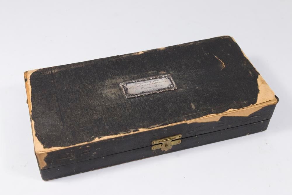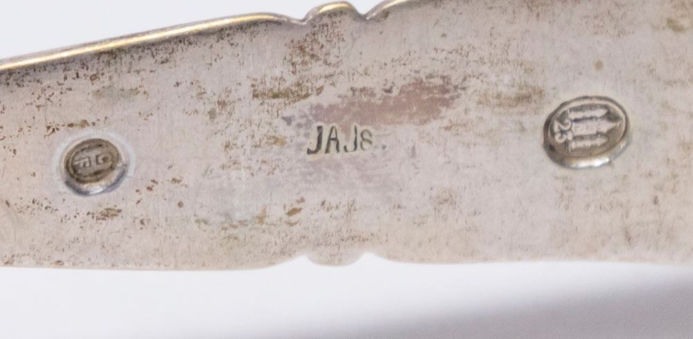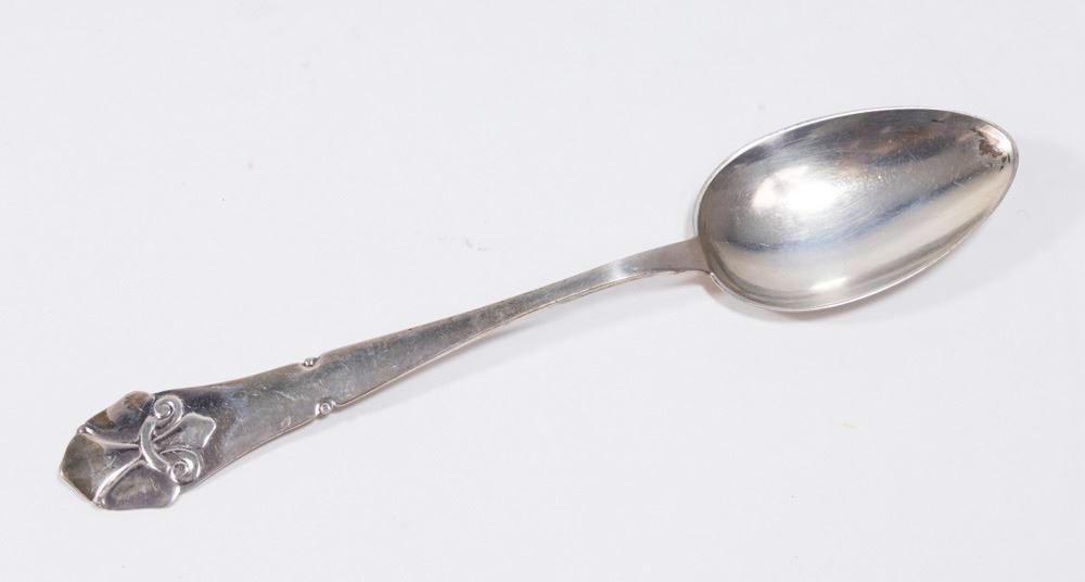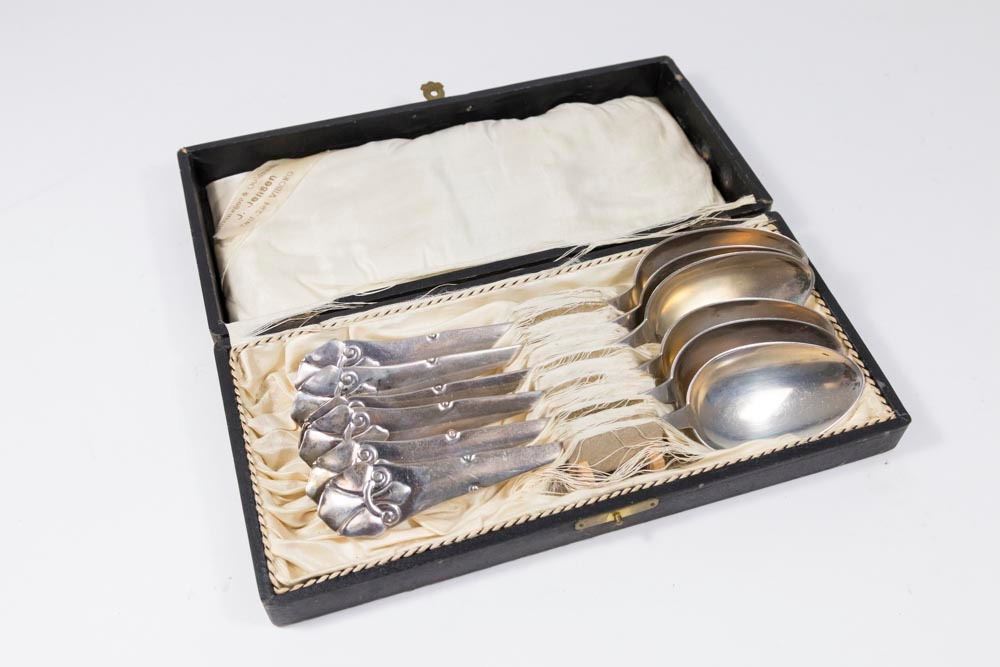 1923. Each spoon approx. 8 5/8" L. Total weight approx. 10 ozt. In fitted box. Box as is.