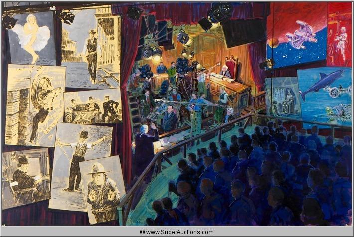 A Painting Titled "Set Audience" / Mounted on Foam Board / Depicts Characters such as Marilyn Monroe, Charlie Chaplin and Abbott & Costello also showing Star Trek and more {L 50 1/2" x H 32 1/2}