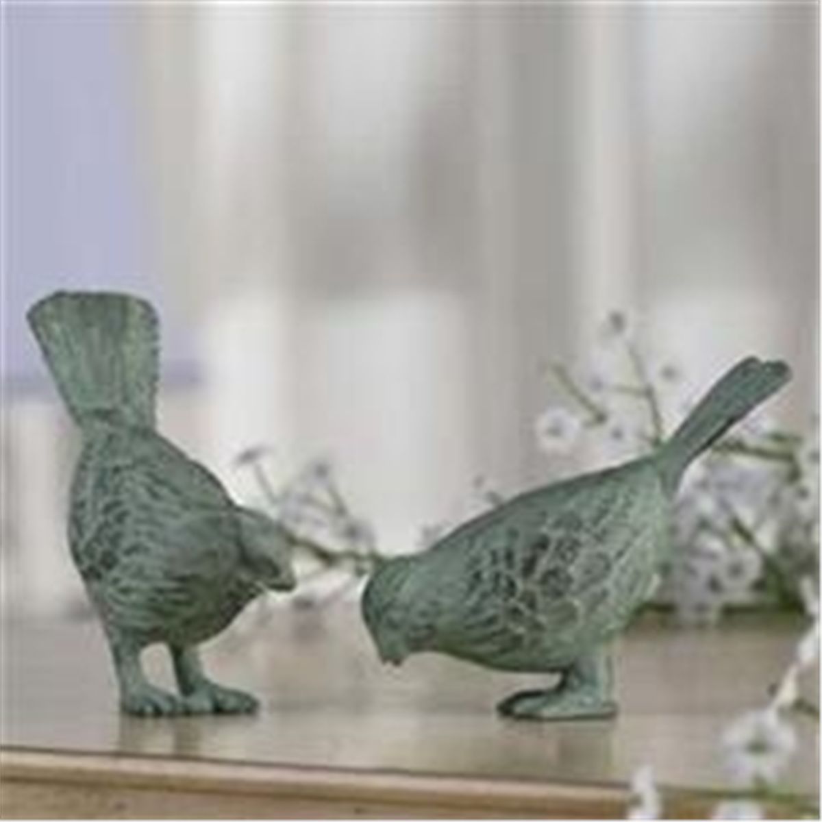 Set Bird Sculptures - 3.5"H X 3"W X 3.5"D - Cast Iron - Verdi Finish