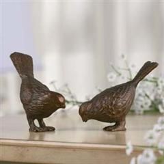 Set Bird Sculptures - 3.5"H X 3"W X 3.5"D - Cast Iron - Bronze Finish