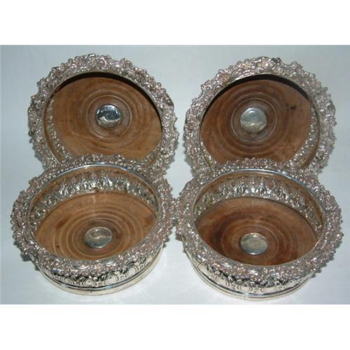 An Extremely Rare Set of Four Superb Regency Sterling Silver Wine Table Coasters of impressive proportions, early 19th Century. <P>