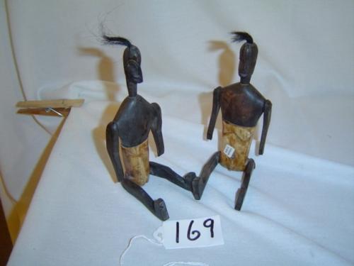 Delightful figurines made of bone and wood come complete with movable arems, legs and genitalia. This Couple with hair is 7" tall and come from the Lombok Tribe on Sumba, one of the southeastern islands of Indonesia.