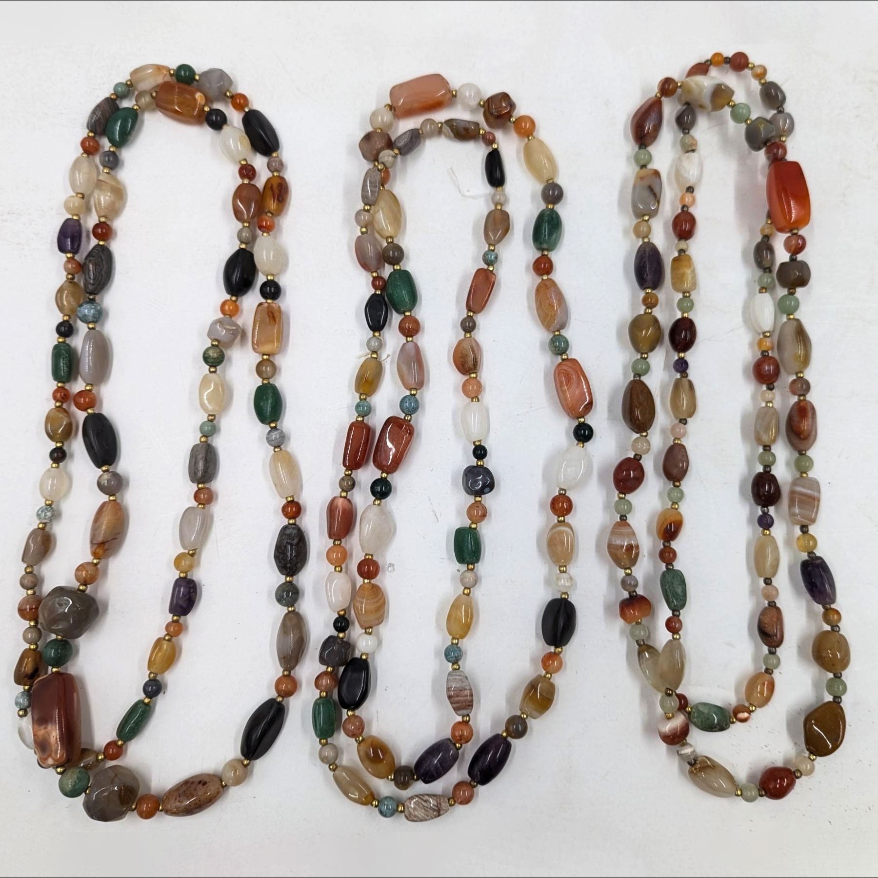 **DUE TO THIS LOT BEING JEWELRY IT MUST BE PAID VIA BANK WIRE TRANSFER OR CERTIFIED CHECK.** Set Of 3 Large Carved And Polished Precious Stone Beaded Necklaces. Measures approx. 24" clasped each. Provenance: Private Collection From A Florida Estate.