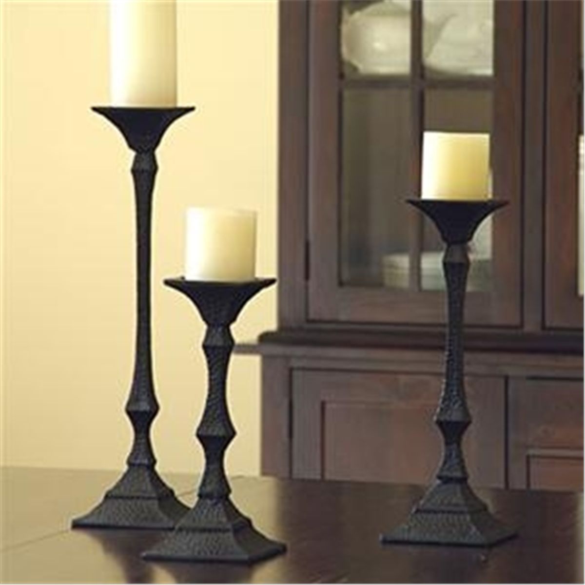 Set Of 3 Richmond Pillar Candle Sticks - 19"H, 15"H, 12"H - Cast Iron