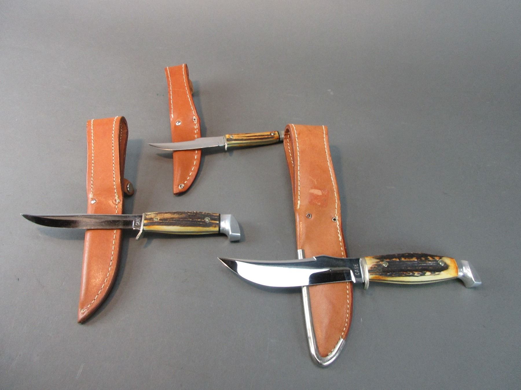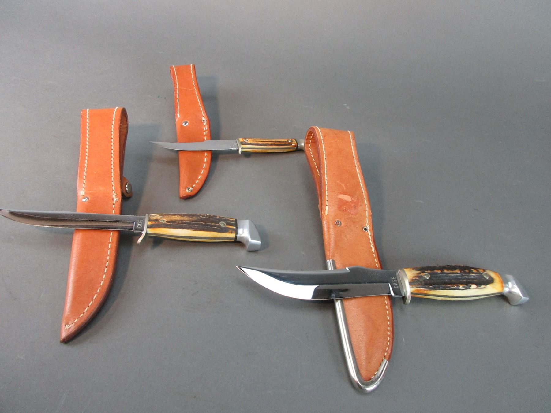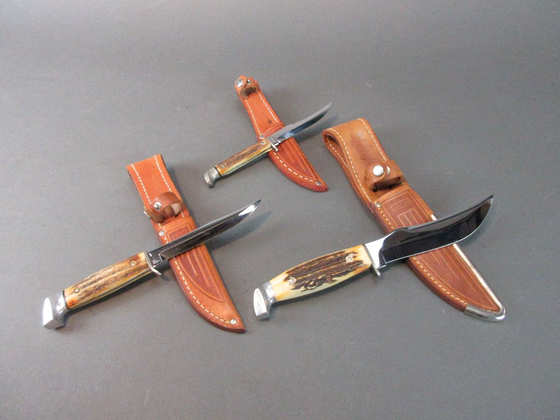 Set Of 3 Unused Case Knives With Original Sheaths- 5" Blade 4" Handle- 4" Blade 3.5" Handle- 3" Blade 3" Handle
