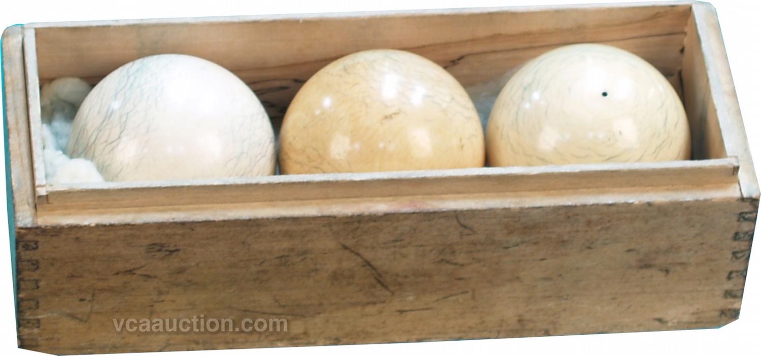 Set Of 3 Vintage Ivory Billiard Pool Balls by The Brunswick-Balke-Collender Co. in original wood box, in good condition
