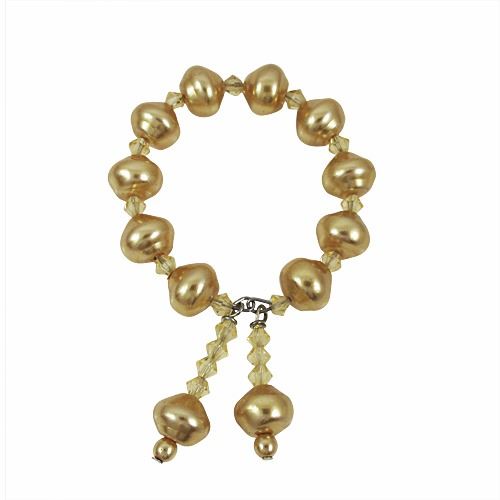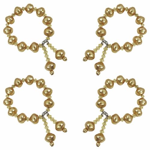 Set Of 4 - Champagne Baroque Pearl And 6Mm Diamond Cut Champagne Crystal Napkin Rings, With Hanging 6Mm Diamond Cut Champagne Crystals, Champagne Baroque Pearl, And 6Mm Champagne Pearl