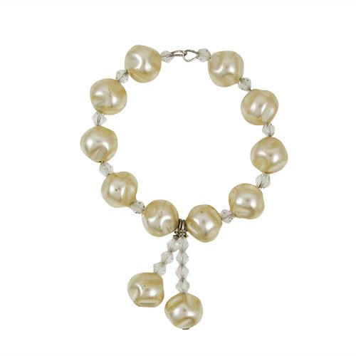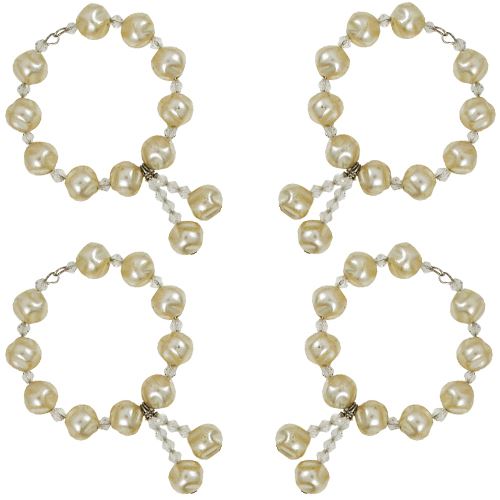 Set Of 4 - Cream Baroque Pearl And 6Mm Diamond Cut Crystal Napkin Rings, With Hanging 6Mm Diamond Cut Crystals And Cream Baroque Pearl