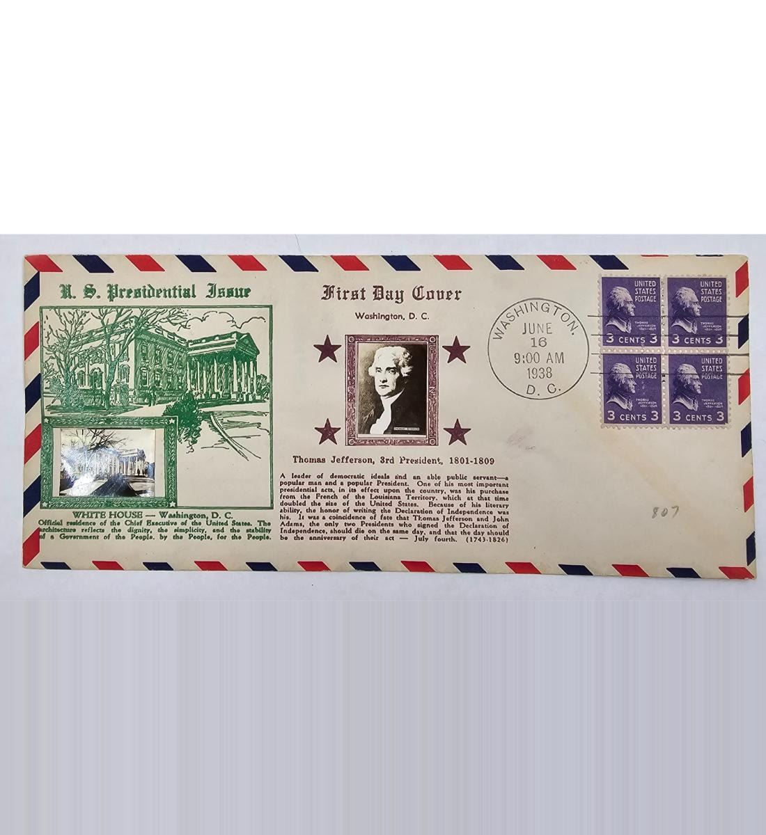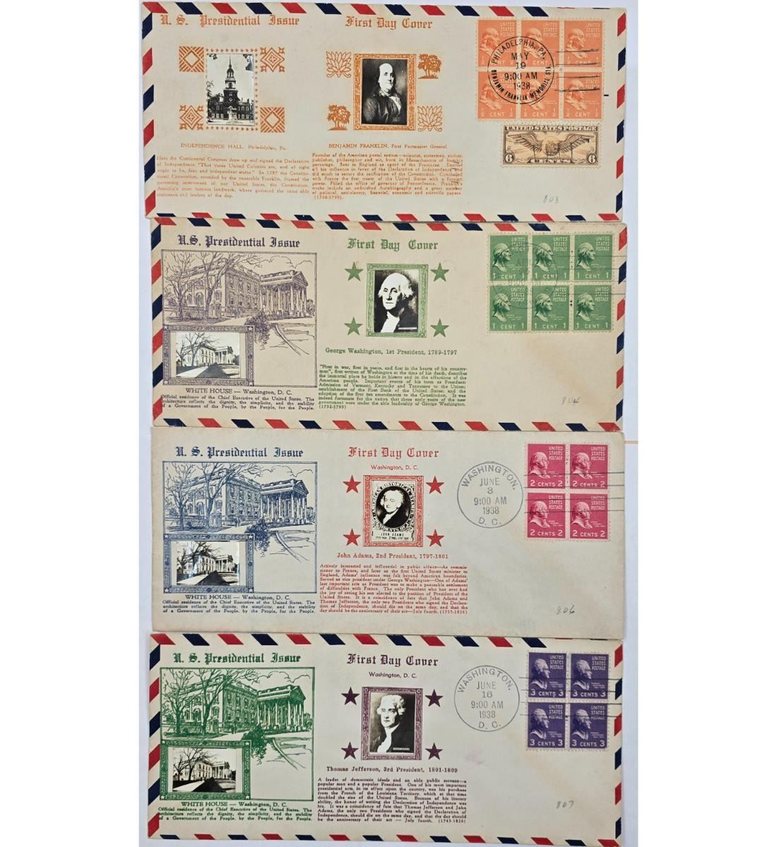 Set Of 4 U.S Presidential Issue First Day Covers Adams Jefferson Franklin & Washington