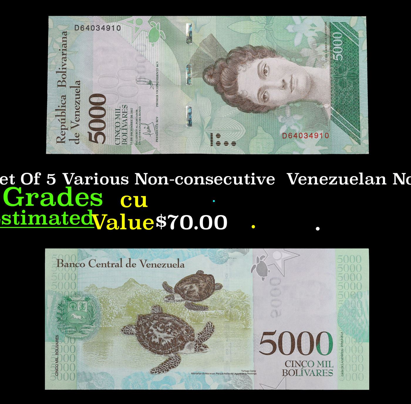 Set Of 5 Various Non-consecutive Venezuelan Notes Grades CU.