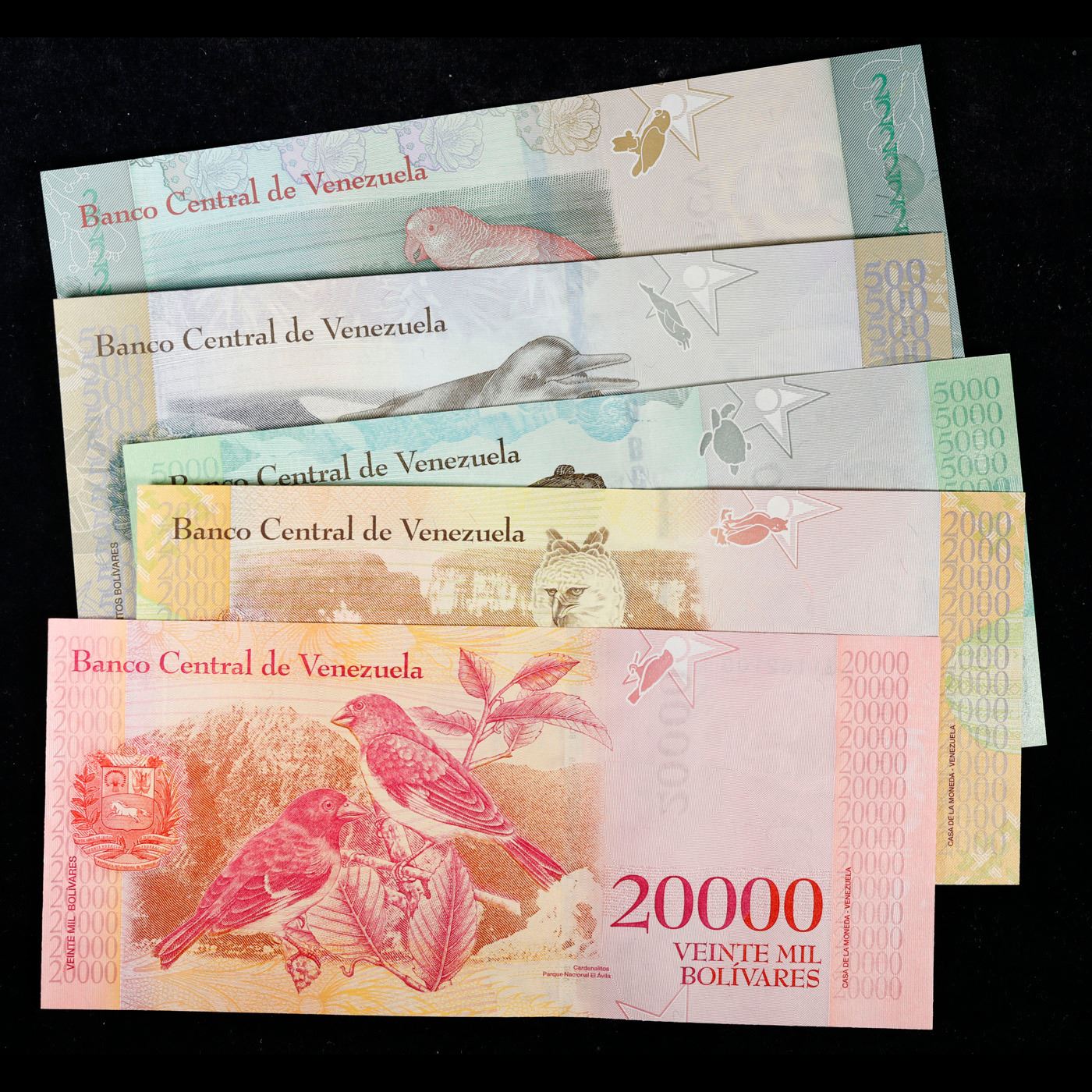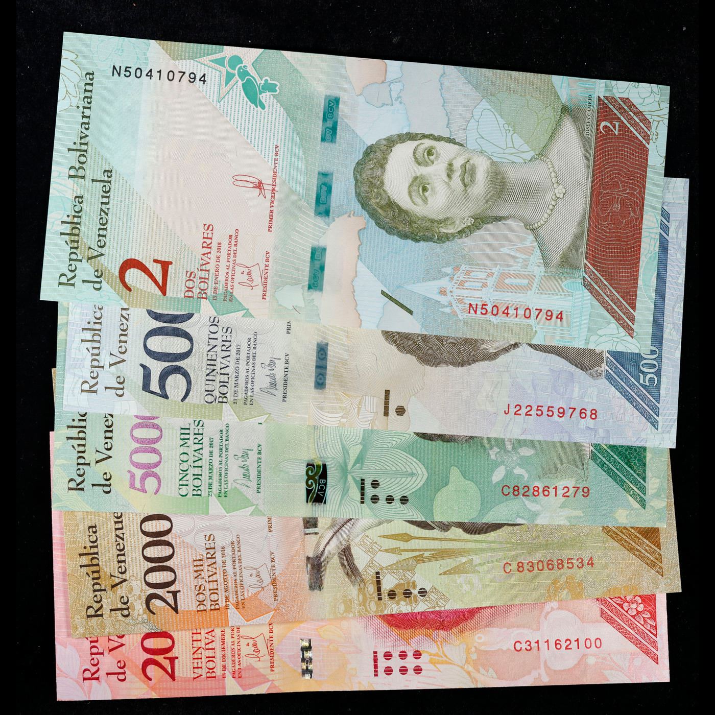 Set Of 5 Various Non-consecutive Venezuelan Notes Grades CU.