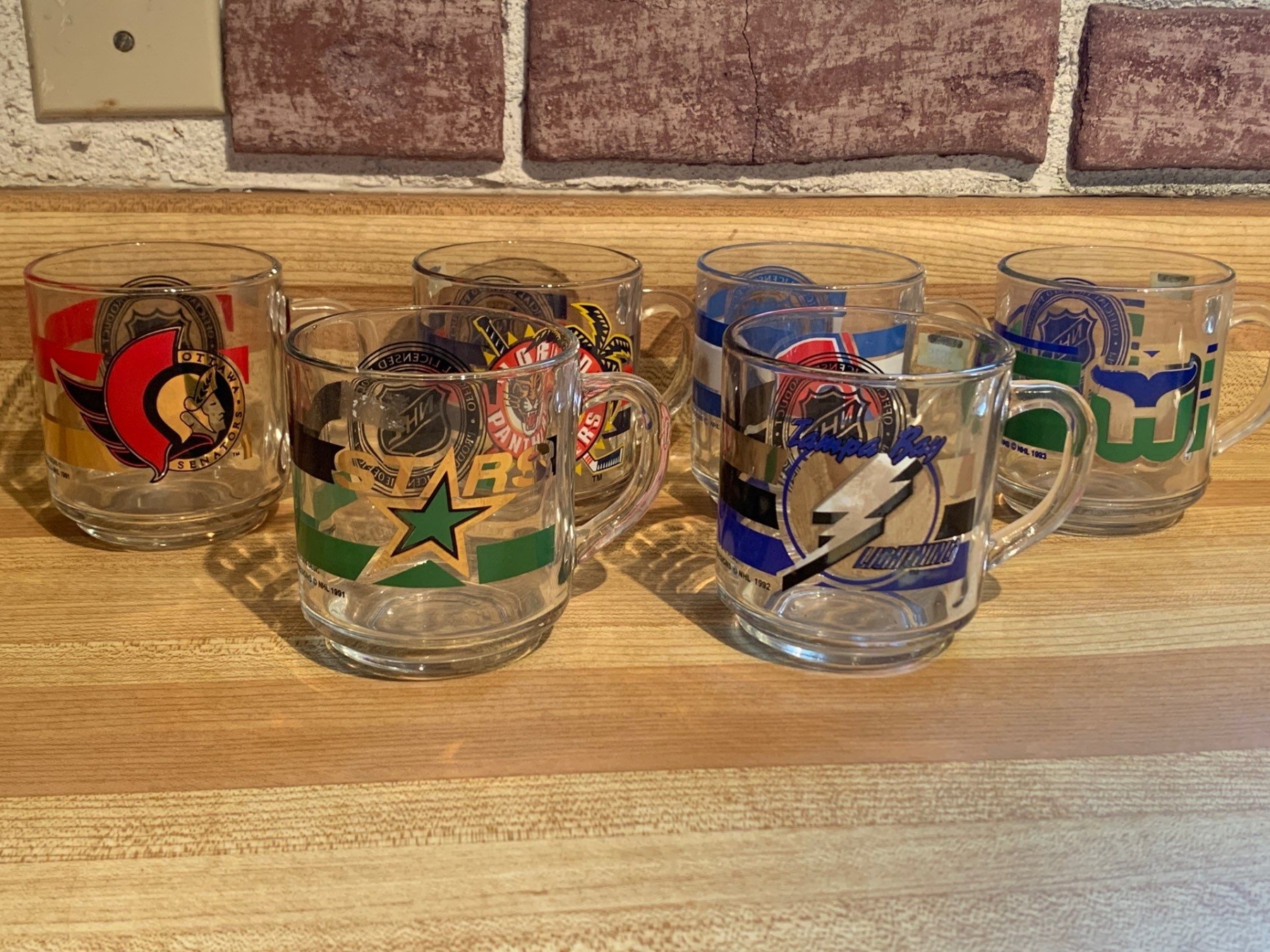 Set Of 6 Collectable 1992 NHL Mugs, With One 1993 Oilers Mug