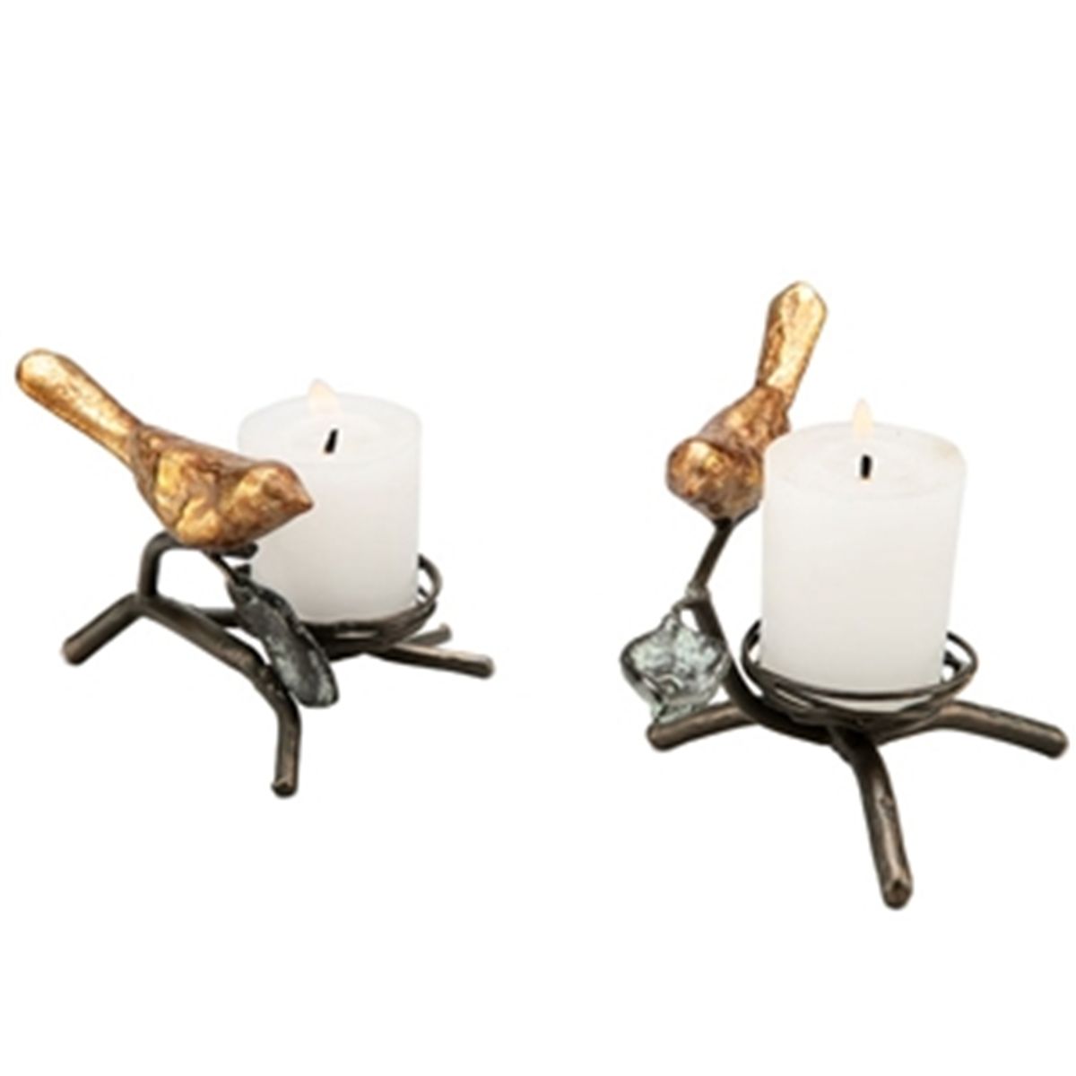 Set Of Bird Pillar Candle Holders - 4"H 4"W 3.5"D - Aluminum