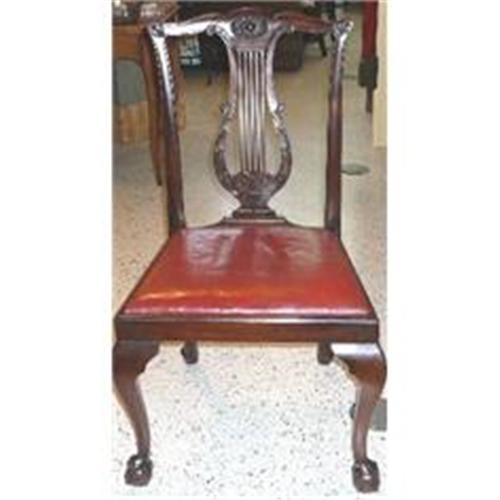 This is a fabulous 19th Century Chippendale style set of eight mahogany dining chairs having lyre backs and ball and claw feet. The set consists of six sides and two arms.