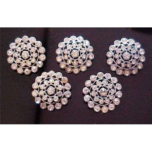 Set of five white diamonte paste set silver metal buttons with loop shanks on the back. Great to convert a black jacket for glamorous evening wear or for a collector.**POSTAGE INCLUDED IN THE RPICE ANYWHERE IN THE WORLD**