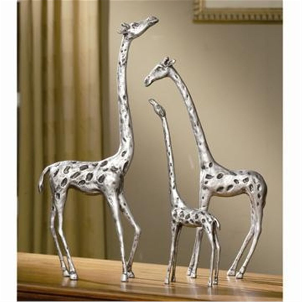 Set Of Giraffe Family Sculptures - 20.75"H 10.5"W 3"D, 17.5"H 10"W 2.5"D, 14"H 6.5"W 2"D - Aluminum