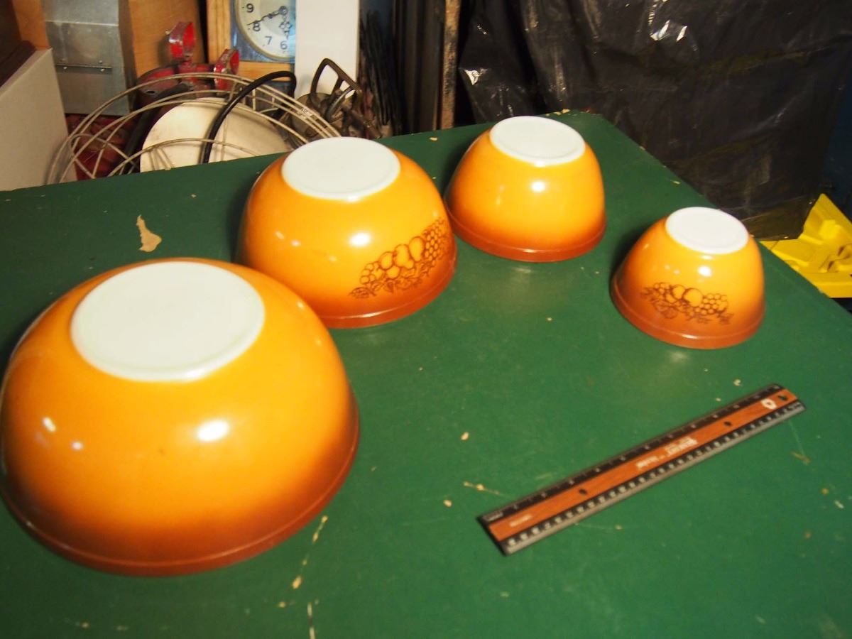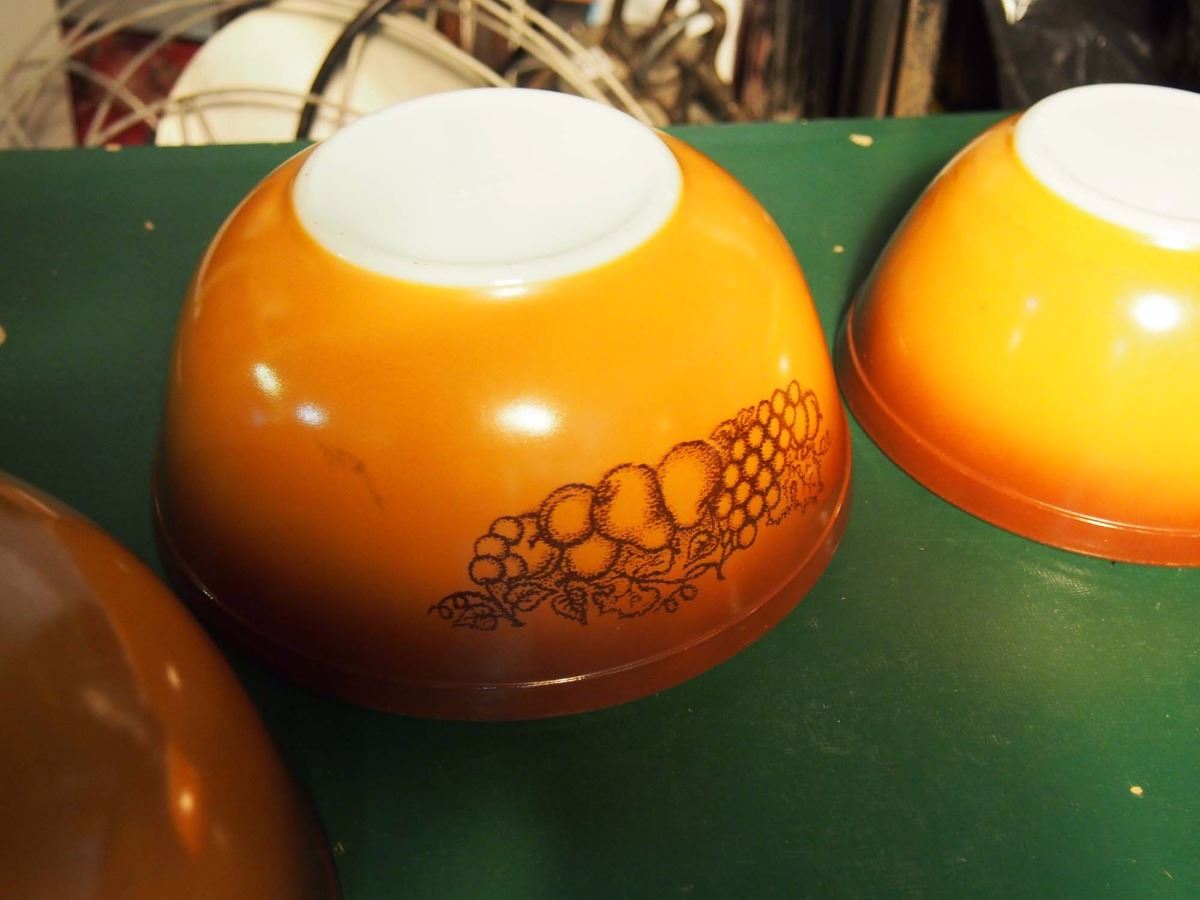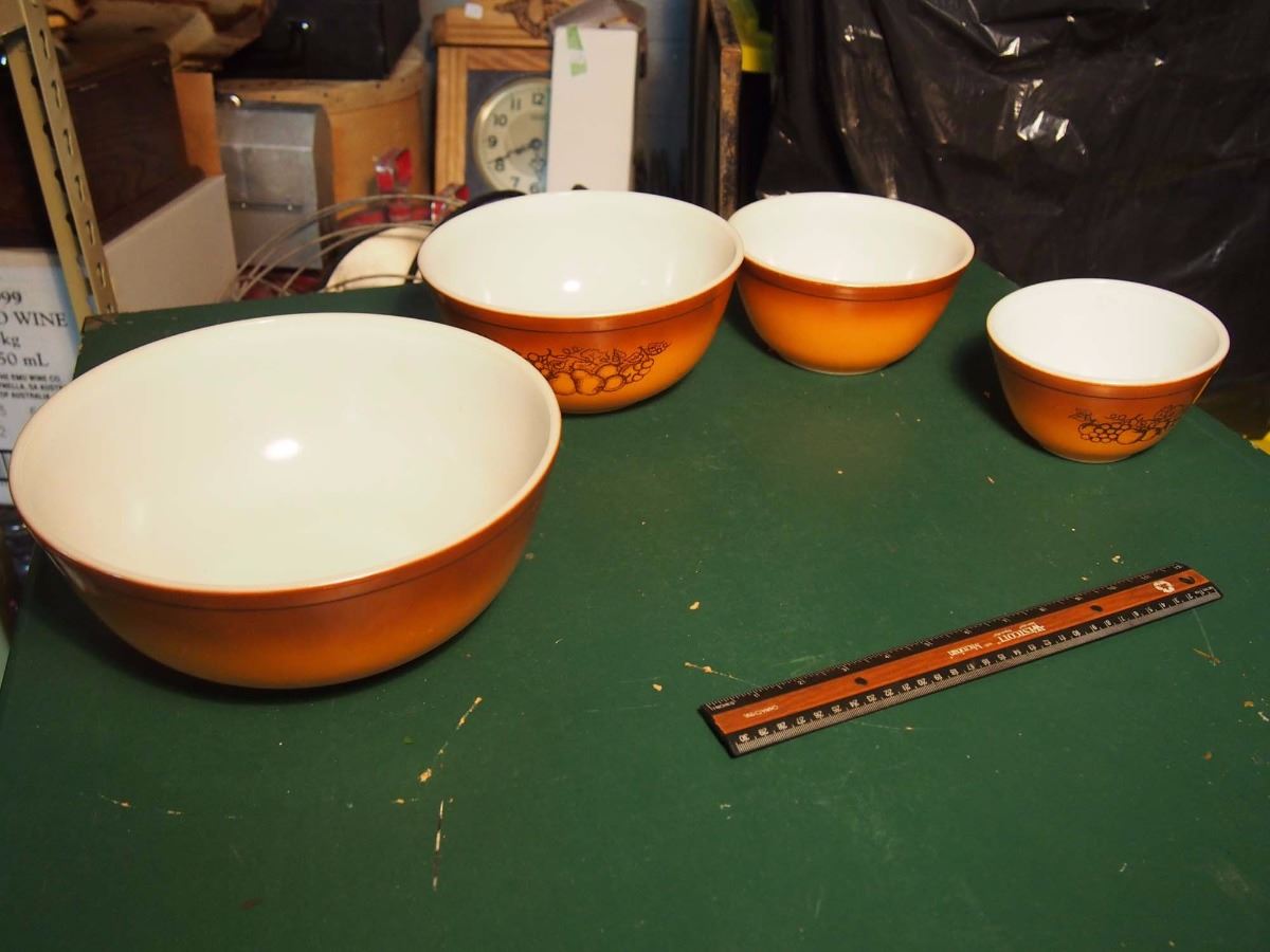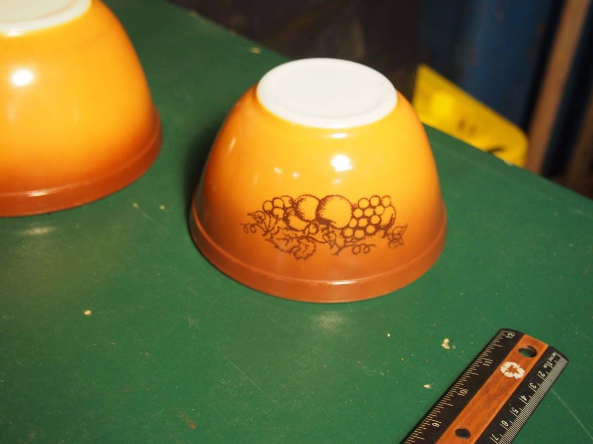 Set Of Pyrex Bowls, Two With Fruit On Side