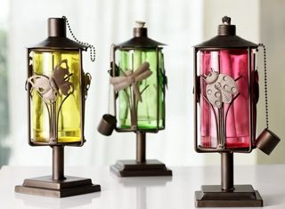 Set Of Table Top Oil Lanterns (Butterfly, Dragonfly & Ladybugs - 11"H 4.5"W 4.5"D - Iron & Glass