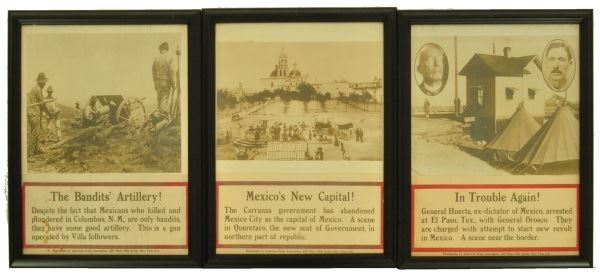 "Mexico's New Capital", "The Bandits Artillery", "In Trouble Again". All measure 16" x 20"