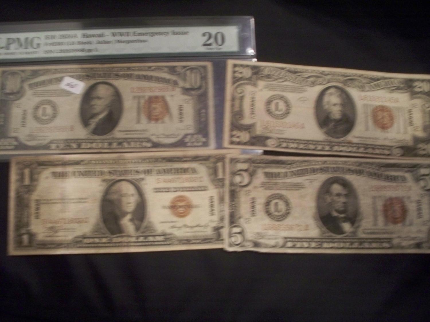 Set Of WWII Issue "Hawaii" $1, $5, $10, $20 Notes