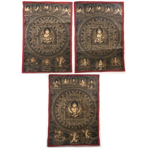 <tr><td>Title:Set Three BlackDistemper & Gilt-Mandalas 19/20C</td></tr>