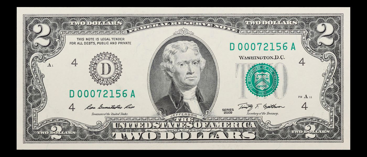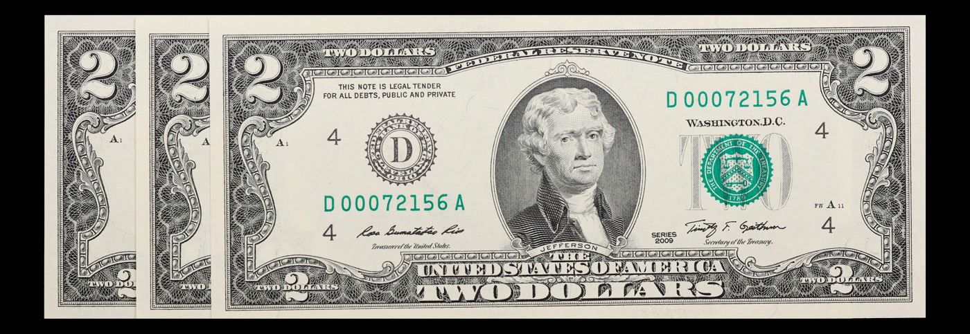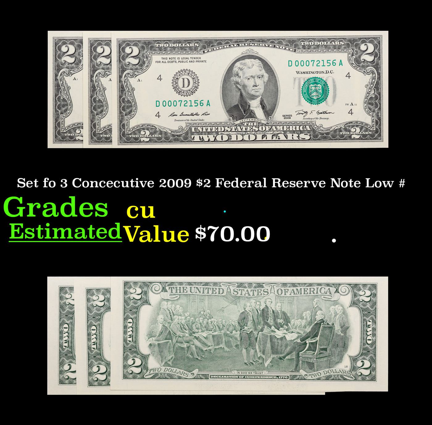 Set fo 3 Concecutive 2009 $2 Federal Reserve Note Low # Grades CU.