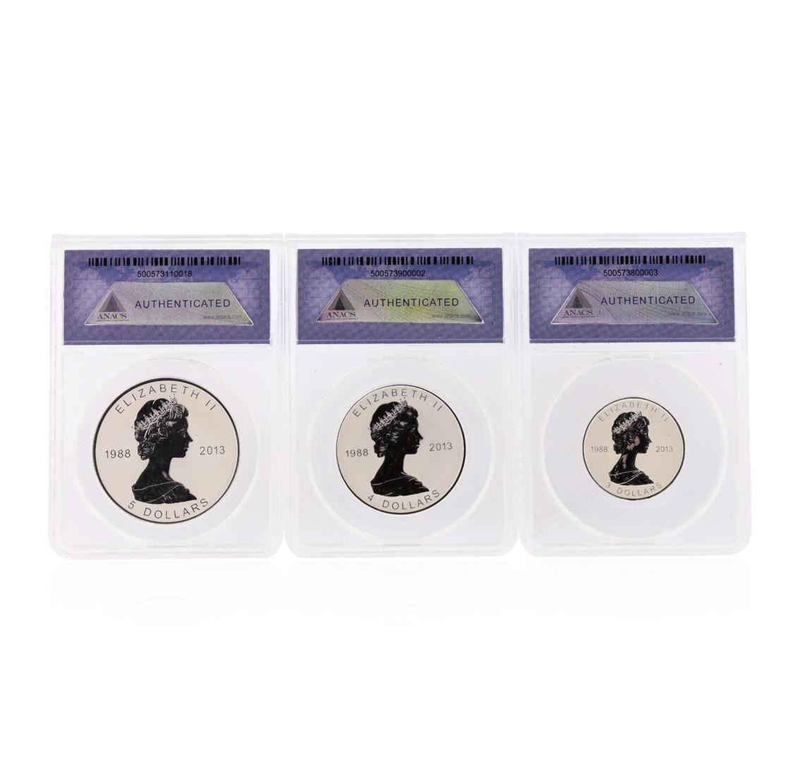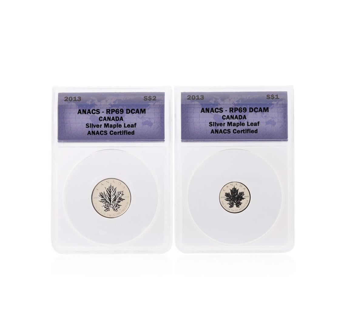 One Set of $1-5 Canada Silver Maple Leaf Coins ANACS Graded RP69 DCAM. ANACS Certified.