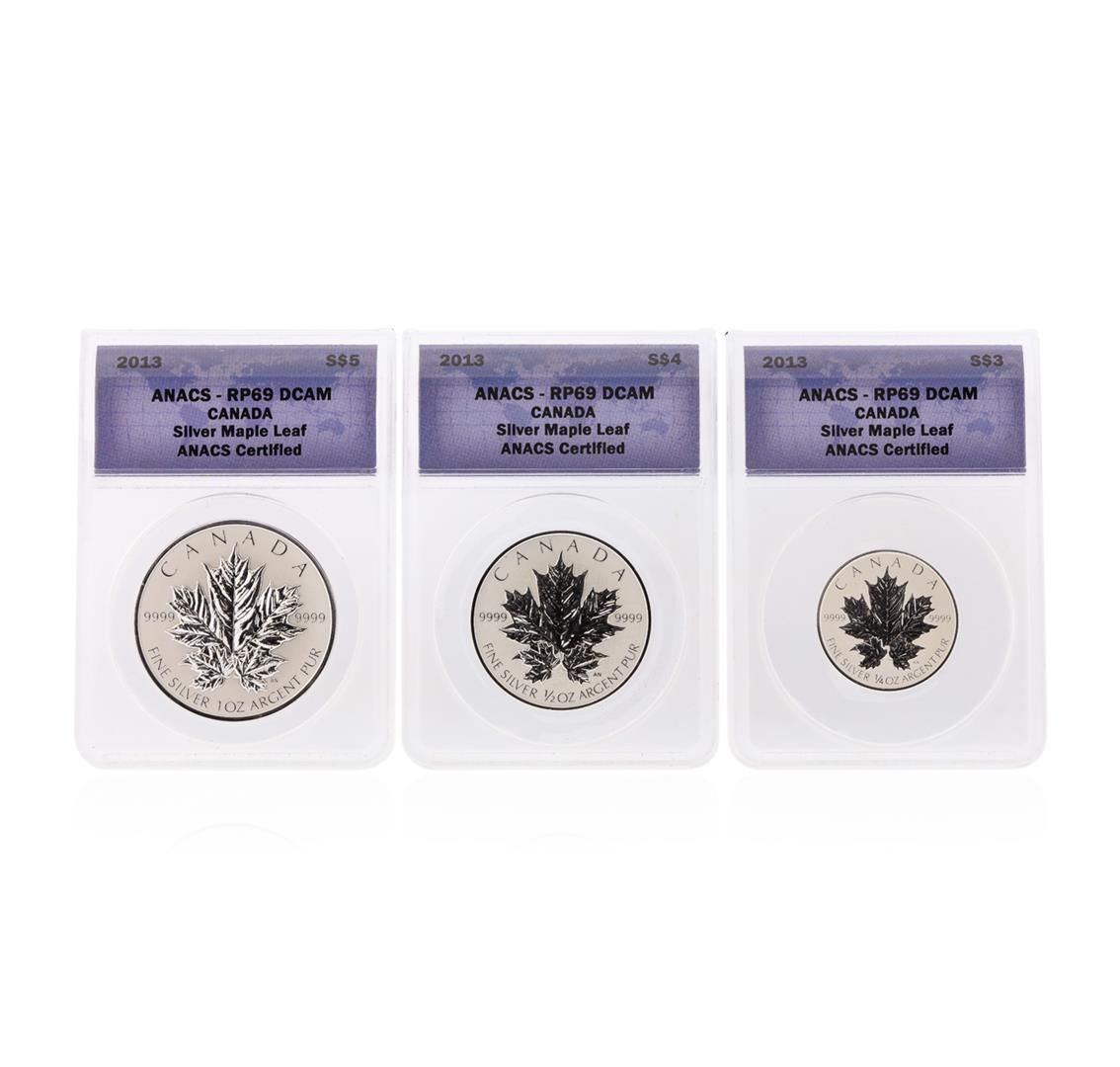 One Set of $1-5 Canada Silver Maple Leaf Coins ANACS Graded RP69 DCAM. ANACS Certified.