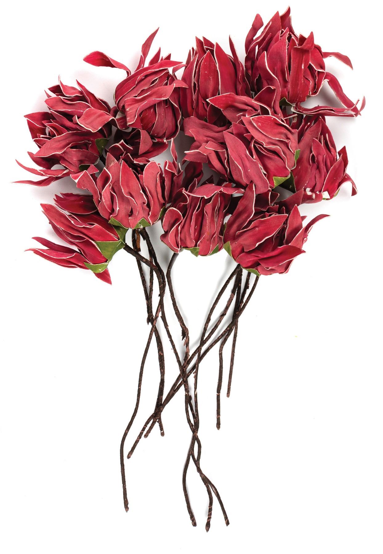 (Disney, 2016) A set of (10) prop flowers that were used in the film Alice Through the Looking Glass. These props were created for the Queen of Hearts' rose garden and are made of foam, with the stems made of foam-wrapped wire. Each flower measures approximately 26" tall and the set is in very good condition with minor surface wear throughout.