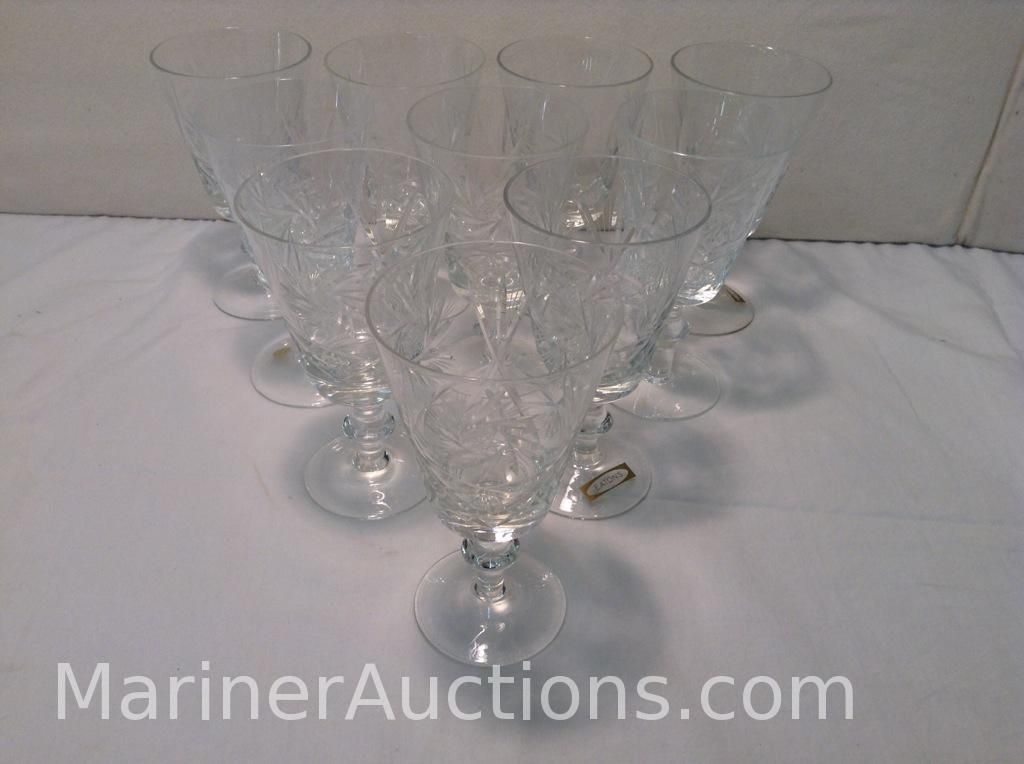 Set of 10 Hungarian Pinwheel Crystal Wine Glasses
