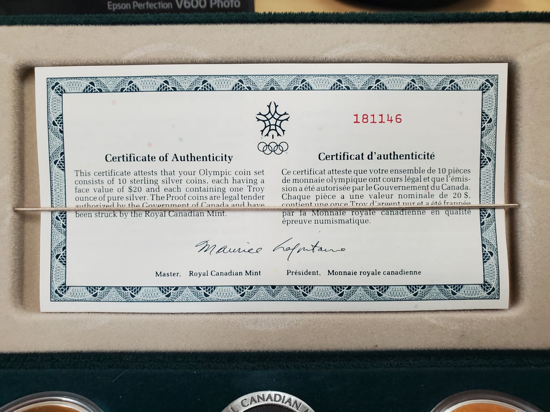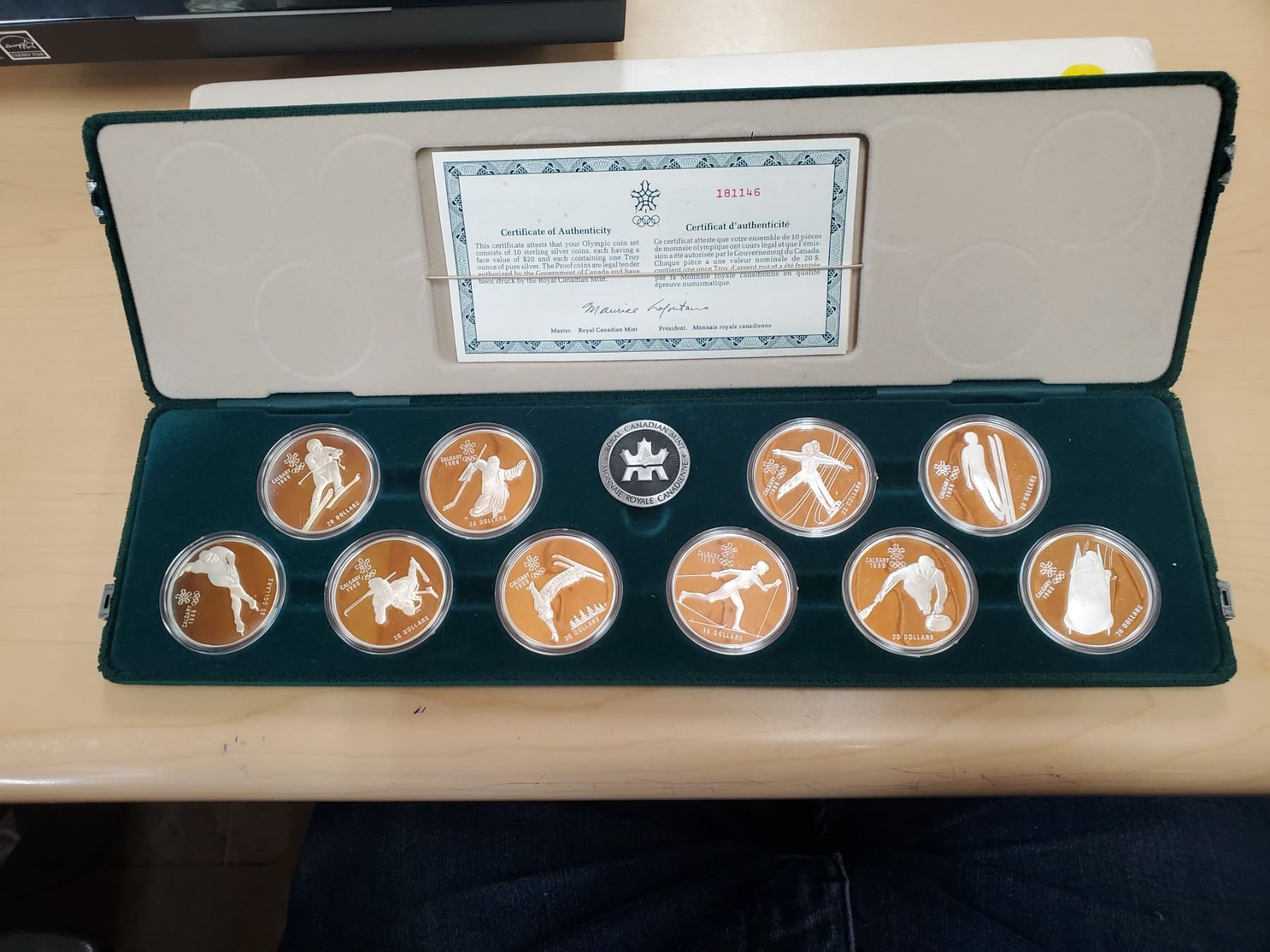Set of 10 Olympic Calgary 1988 siver coins in case