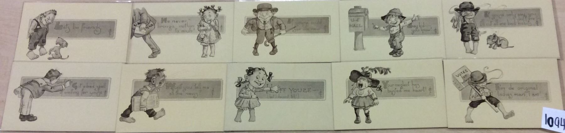 Set of 10 & One Suffrage Comic Bowery Kids Frederick Cavially Postcards