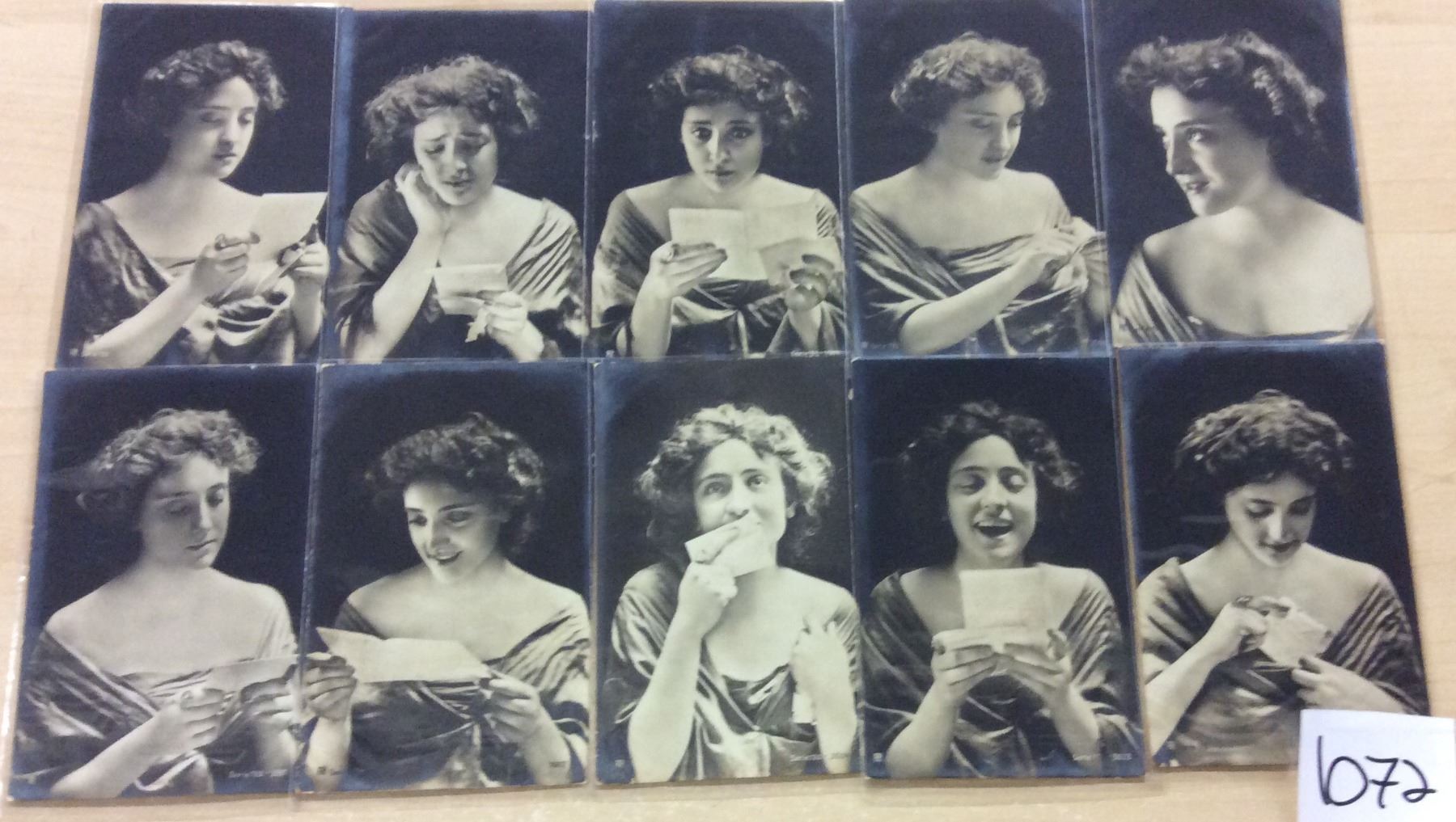 Set of 10 Photo Postcards of Woman Reading Love Letters