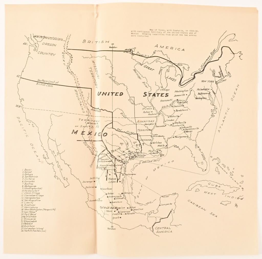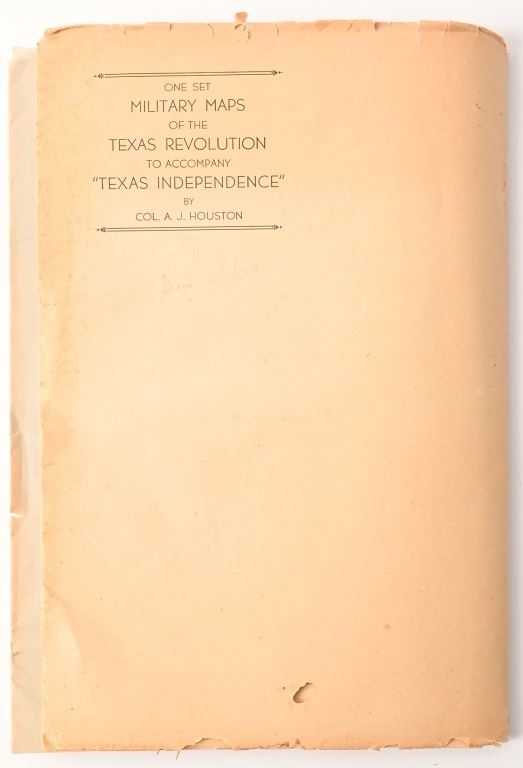 Military maps of the Texas revolution. Accompanied the limited deluxe edition of 500 copies of Col. A. J. Houston's 1938 book "Texas Independence". The accompanying set of maps is very hard to find.