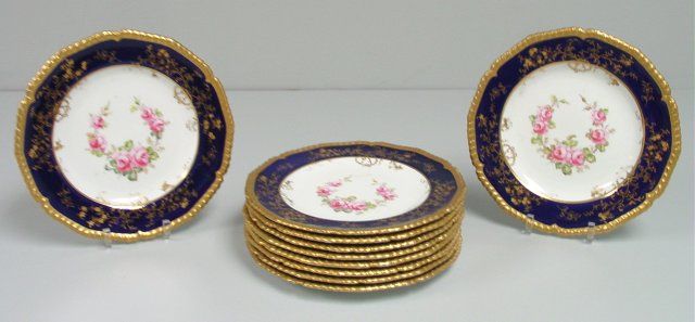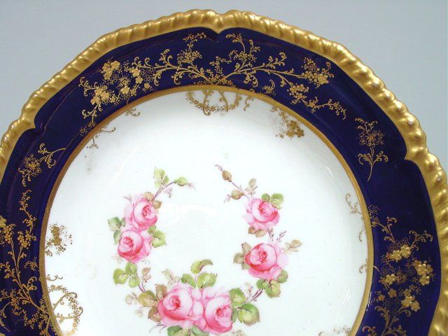 With cobalt border & "Floral" design, some paint wear. Please read our terms of sale.