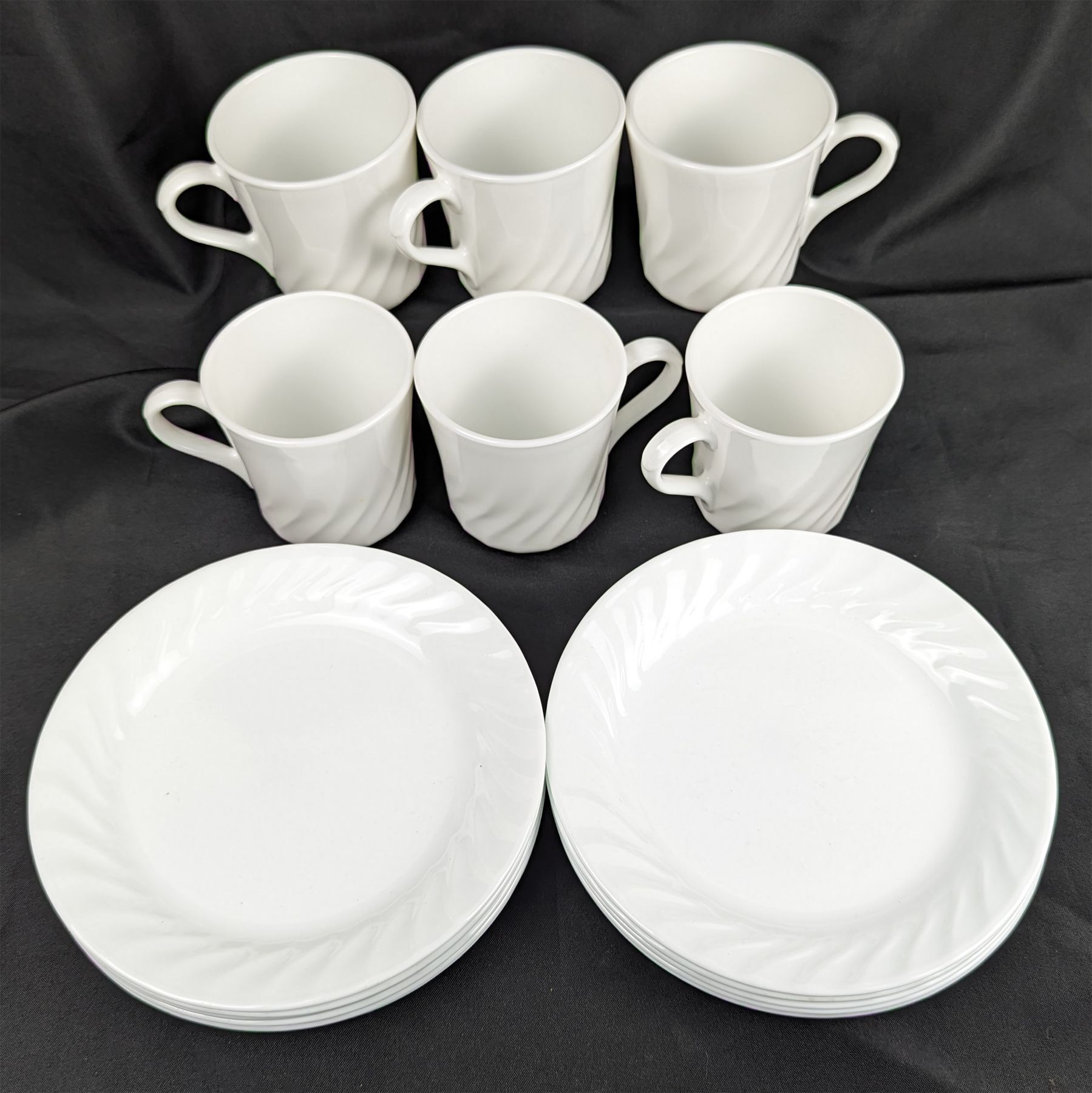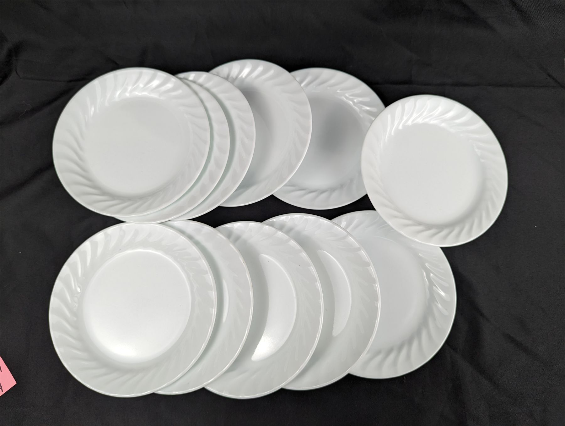 Set of 11 Corelle by Corning ELEGANCE Enhancements White Swirl Dessert Plates 7.25"