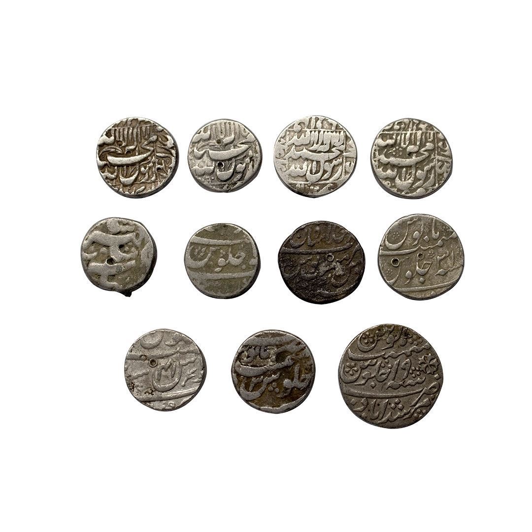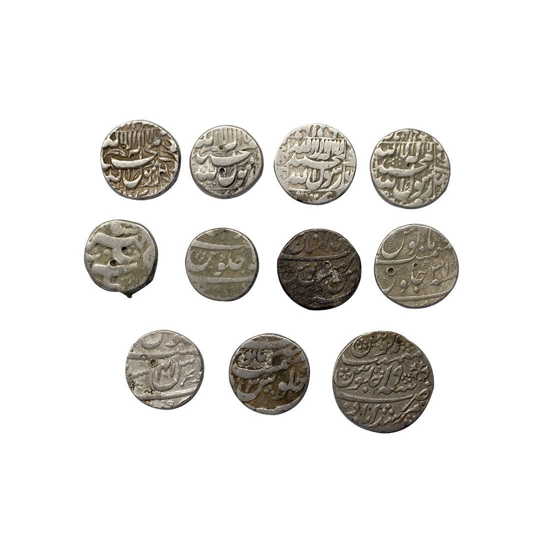 Set of 11 Rupees including Jahangir, Shah Jahan & Aurangzeb, One Rupee of Bengal Presidency.